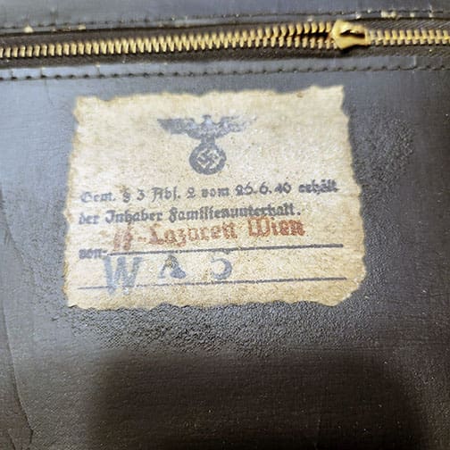 Here is something unique: an original 10 x 14 inch binder that once belonged to a SS doctor (we wish we would know who), made out of elephant hide and with SS runes on the front as well as on the inside. The condition is rough, but have you ever seen another? We have not.
