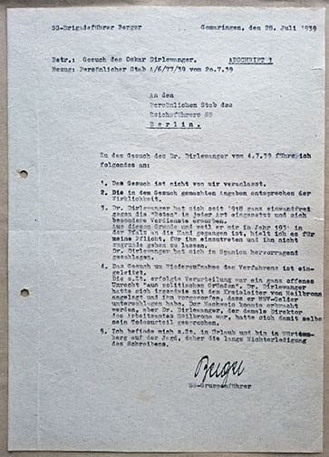SIGNED BY SS-GRUPPENFÜHRER GOTTLOB BERGER