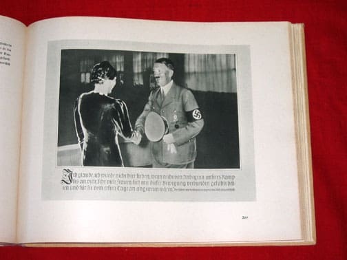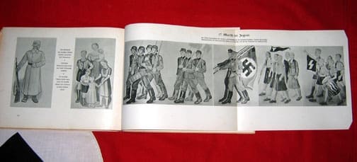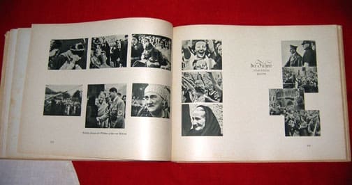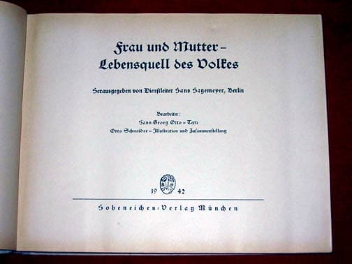 This 12 x 9-3/4 inch hard cover book with 330 pages is definitely one of the best original Third Reich photo books on the German women, wives and mothers of Hitler-Germany ever printed! It has countless photos, illustrations and several charts in it and the very “patriotic” text leaves no doubt about the purpose of this book: to convince the German people about the need of more babies in order to ensure the future and the hail of the German Reich.