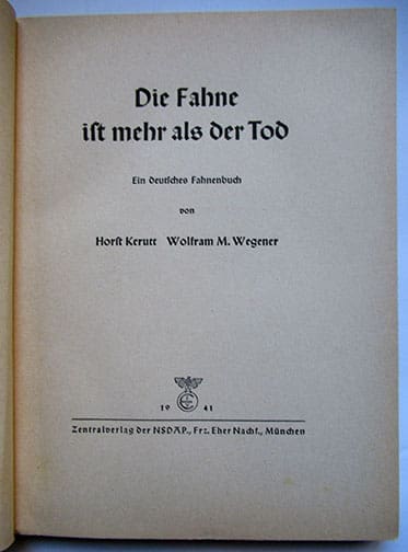 This excellent 6 x 9 inch, 228-page hardcover book in very nice condition by Horst Herutt was published in 1941 by Zentralverlag der NSDAP in Munich. The title is one of the key slogans of the Hitler Youth and translates ‘The Flag is more important than Death’. The book contains heroic stories with nice illustrations and was aimed at HJ boys and how the country expects them to be as brave and strong as the characters in the stories.