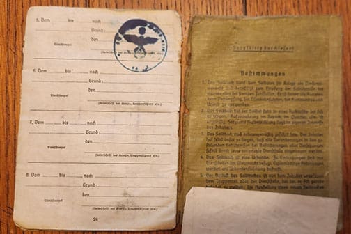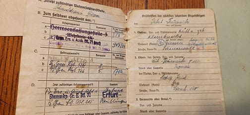 Original panzers soldier’s documents grouping who survived the war and then worked for the U.S. after. Has original RAD book and DAF book. The Soldbuch pages have separated from main book. Someone put orange tape on spine but can be carefully removed. Panzer Soldbuchs are not common to find and we are pleased to be able to offer this nice grouping.
