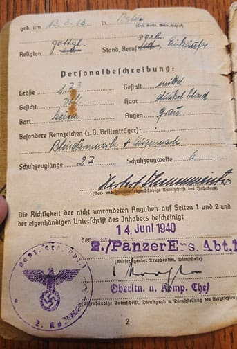 INTERESTING ORIGINAL THIRD REICH PANZER SOLDIER’S DOCUMENTS GROUPING