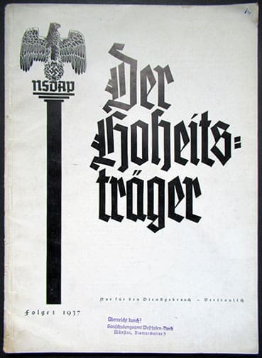 The ‘Der Hoheitsträger’ was only for these political leaders: Gauleiter, Deputy Gauleiter, Gauamtsleiter, Heads of the Gauschulungsburgen, Kreisleiter and one copy was to be circulated among the diostrict office leaders and local group leaders, as well as the Obergruppenführer and Gruppenführer of the SA, SS, NSKK, NSFK, the Labor Gauführer of the RAD, the Heads of the Reich Student Leadership, the Gau Student Leaders.