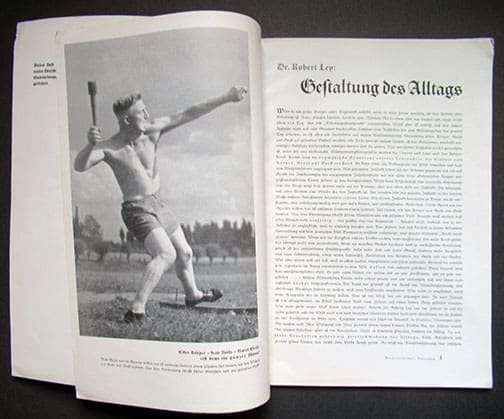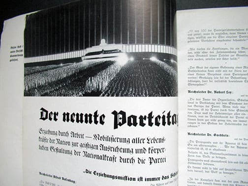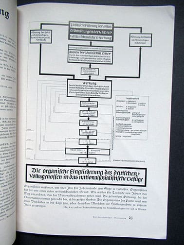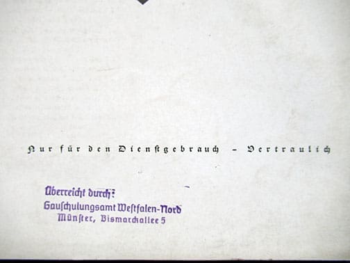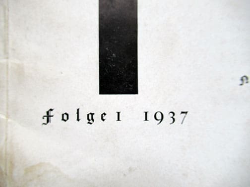 It was published from 1937 to 1944 and contained propagandistic articles, reports, ideological training, reflections and training on the implementation of the further implementation of ideologies and measures in the Reich. The literature section “From the Writings of the Present” presented numerous new publications that were in line with the Nazi ideology. The monthly or bi-monthly magazines are 9 x 12-1/2 inches and each issue has 36 pages. They were never for public sale and were distributed free of charge to the select group of political leaders.