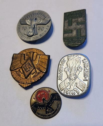 LOT OF FIVE (5) ORIGINAL THIRD REICH TINNIES
