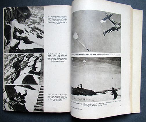 The 6-1/4 x 8-3/4 inch, heavily illustrated 128-page soft cover book in nice condition (only the cover shows some wear) was published in 1941 by Verlag Scherl, Berlin. It deals about the role of the German Luftwaffe during the campaign in Norway. Interesting Luftwaffe material on every page.