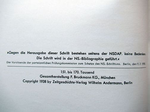 This interesting 7-1/4 x 10-inch, 96-page soft cover book was published in 1937 by Verlag Heinrich Hoffmann in Munich. The professional photographs were taken by Heinrich Hoffmann, the official photographer of the NSDAP. The 86 photos in this book provide an interesting insight of the “unofficial” life of Adolf Hitler. Many of the photos were taken on the Berghof, Hitler’s mountain residence on the Obersalzberg, other photos show Hitler with mountain farmers, with visitors on the Berghof, people he met on his walks in the stunning nature but also Hitler alone, relaxing and reading the paper, throwing sticks for his dog and so on. An interesting publication in nice condition.