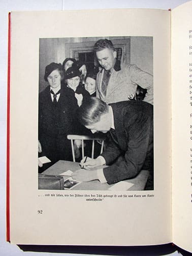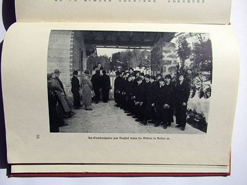 The book was written by Florentine Hamm and Inge Mantler and published in 1937 by Zentralverlag der NSDAP, Franz Eher Nachf. in Munich, Germany (Central Publishing House of the Nazi Party). The size of this sought after hardcover book is 6-3/4 x 9-1/2 inch, it contains 114 pages with fifty excellent full page black & white photos about Adolf Hitlers mountain residence, the BERGHOF, the surrounding nature, early comrades of Hitler and Dietrich Eckart, one of Hitlers closest friends from the very early days, Dietrich Eckart’s grave, the Nazi Guesthouse, etc….! The book is also the report of a group of young BDM – girls who visited the Obersalzberg because they were curious to see Adolf Hitler’s Reichschancellery in the Alps, the Berghof and, of course, to see their Führer. It must have been one of the highlights in the lives of these young girls when they finally met the Führer at the gate of the guardhouse and every one of them received a photo postcard with his original autograph (which is worth a small fortune today).