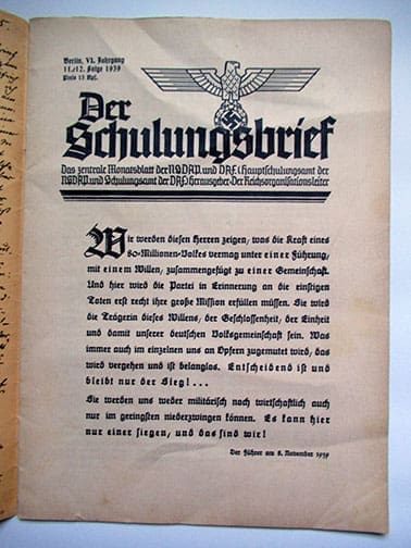 ORIGINAL 1939 OFFICIAL NSDAP EDUCATIONAL MAGAZINE ‘SCHULUNGSBRIEF’