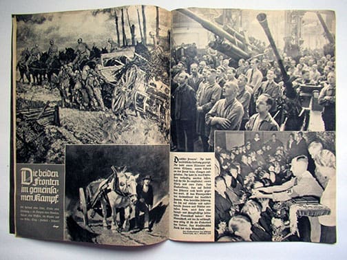 These 8 x 11 inch magazines were published every month by Reichsorganisationsleiter der NSDAP Dr. Robert Ley who also published the Organisationsbuch der NSDAP. The first issue of these extremely interesting periodicals was published in March of 1934. Offered here is the double issue 11/12 (Nov./Dec.) from 1939. The periodicals contained all kinds of official Nazi censored information on history in general but also NSDAP history, racial and purity of the German blood questions, of course also anti-Semitic articles on Jews, German farming and the “Blut und Boden” (Blood and Soil) philosophy, the German Labor Front and their achievements, the SS, the German Wehrmacht and all its branches, a lot on Adolf Hitler of course and so on – everything the fellow “Volksgenosse” should know! Very nice condition.