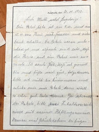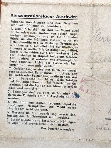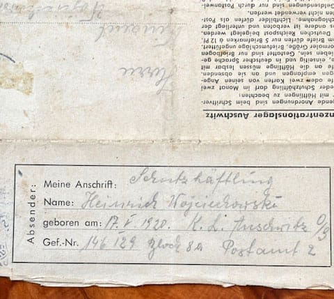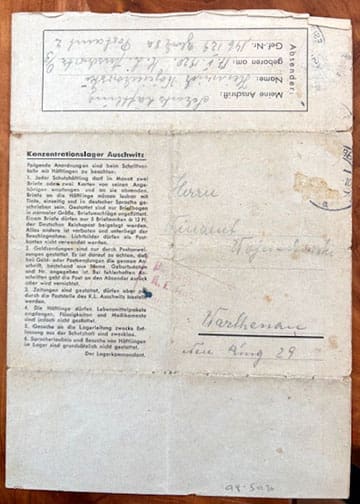ORIGINAL 1943 AUSCHWITZ CONCENTRATION CAMP INMATE LETTER