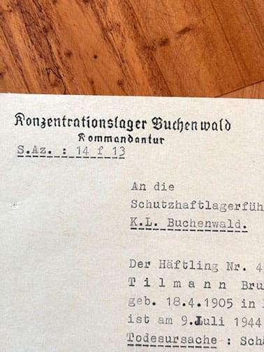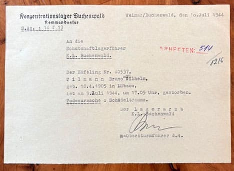 ORIGINAL 1944 BUCHENWALD CONCENTRATION CAMP INMATE DEATH NOTICE