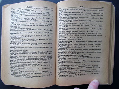 ORIGINAL 1946 OFFICIAL BOOK WITH ALL NAZI LITERATURE TO BE DISCARDED
