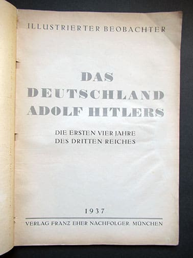 It was published in 1937 by Verlag Franz Eher, the publishing house of the NSDAP as a special edition of the “Illustrierter Beobachter“, the heavily illustrated NSDAP periodical.