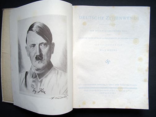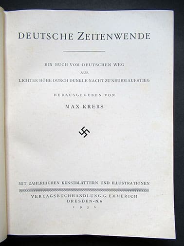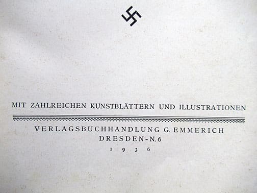 This hard to find 9 x 12 inch hardcover book with 380 heavily illustrated pages is one of the finest original Third Reich books on the so called “Kampfjahre” (Battle Years) and the Nazi seizure of power in 1933! It was written by Max Krebs and first published in 1934 by the Völkischer Verlag in Dresden. Offered here is a copy from the 1936 edition. The book is dedicated to Adolf Hitler and his brown battalions. A great book in nice condition. The exterior shows some minor wear and inside some stain spots but nothing serious.