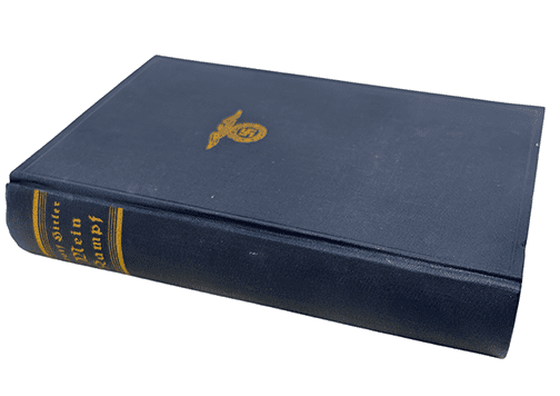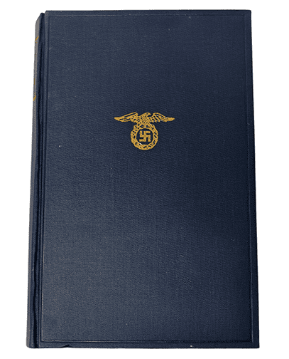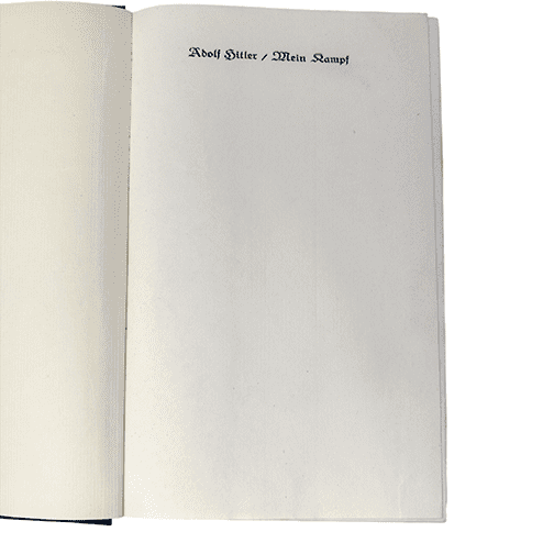 Adolf Hitler’s autobiography and political manifest. The copies that are offered for sale are all the People’s Edition or Volksausgabe, published by Central Publishing House of the NSDAP, Franz Eher, Nachf. The Volksausgabe was smaller in size than the earlier editions. In fact, it now had the same size as a standard German bible. This was no coincidence; the Nazi’s goal was that Mein Kampf would eventually replace the bible in every German household.