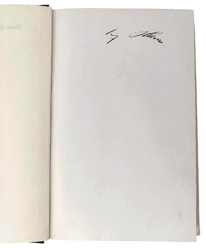 47th People’s Edition or Volksausgabe, published in 1933 by Central Publishing House of the NSDAP, Franz Eher, Nachf. in Munich, Germany, signed by Adolf Hitler in ink. Nice condition, with original dust jacket.