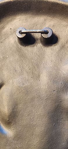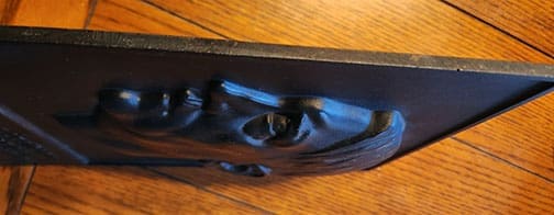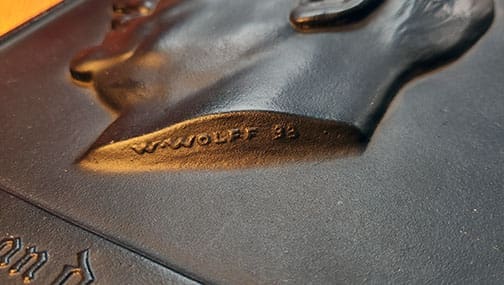 8-1/2 x 12-5/8 inch, very heavy steel AH plaque. Has nice original black paint with embossed profile of Adolf Hitler. Has maker or artist name with 1938 date on neck. The back is nicely marked with original hanging device. The plaque does have a slight bend to it. The force that accomplished that had to be impressive because it is 1/4 inch thick. With that said the plaque is ready to be displayed.