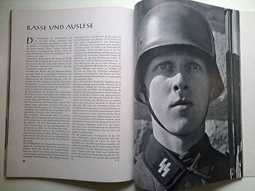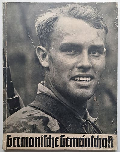 This very hard to find 9-3/4 x 12-1/2 inch, 64-page soft cover book by Dr. Franz Riedweg and Dr. Walter Faltz was published in 1941 by the SS Publishing House Nibelungen Verlag in Berlin and is in very nice condition. The heavily illustrated book is full of pictures of SS men, including many SS volunteers from various European countries, such as Holland, Finland, Denmark and Norway, among others. They were all fighting together with the German Waffen-SS men for a ‘new free Europe’. A great book that rarely gets offered for sale anywhere.