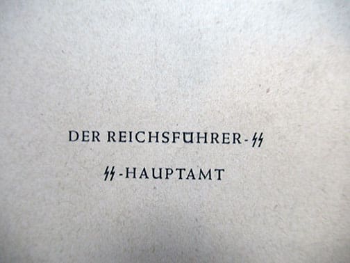 The 8-1/4 x 10-1/2 inch, 104 pages soft cover book was published by order of Heinrich Himmler’s SS-Hauptamt (Head Office) by the SS owned Nordland Verlag in Berlin. The heavily illustrated book contains German and SS songs, Christmas and Nazi history stories, stories from the soldiers at the frontlines, color pictures, runic symbols, Christmas related material for mother and child, quotes of the Führer and much more. The book shows wear but is complete and still a collectible historic item.