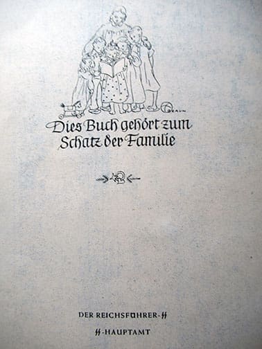 The 8-1/4 x 10-1/2 inch, 104 pages soft cover book was published by order of Heinrich Himmler’s SS-Hauptamt (Head Office) by the SS owned Nordland Verlag in Berlin. The heavily illustrated book contains German and SS songs, Christmas and Nazi history stories, stories from the soldiers at the frontlines, color pictures, runic symbols, Christmas related material for mother and child, quotes of the Führer and much more.
