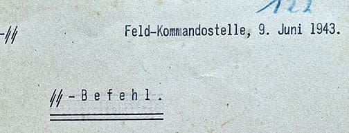 RARE ORIGINAL 1943 SS ORDER, SIGNED BY