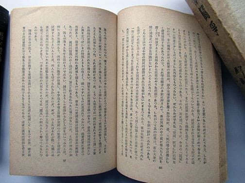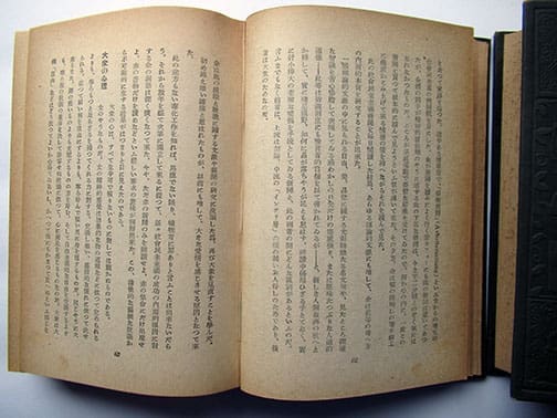 This is the rare original pre-1945 Japanese version of Mein Kampf. This book has a unique binding. It is divided into volume 1 and volume 2. The translator of this book is “Manabe Ryoichi”. He was an expert on German and a translator. He was also working for Japan Ministry of Foreign Affairs. When the Hitler Youth visited Japan, he acted as an interpreter. He was neither a national socialist nor a radical far-right. However, after Japan’s defeat in World War II, he was imprisoned as a war criminal in Sugamo Prison (the prison where HIDEKI TOJO and others were imprisoned). The rare books are in very nice condition and come in their original slipcases (which show some signs or wear).