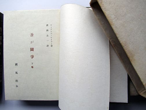 Mein Kampf was translated into numerous languages and since Japan was Hitler-Germany’s ally, it was only natural that a Japanese edition would be published. Very few of the surviving Japanese editions have ever left Japan and come up for sale or have even survived at all.
