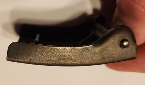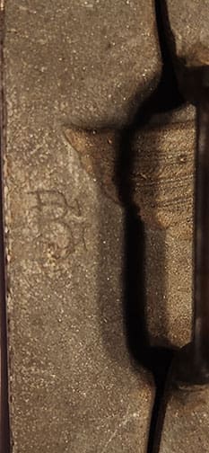 Original Reichsluftschutzbund (RLB or Reich Air Raid Protection Association) belt buckle. An outstanding example of this hard-to-find buckle type, made of stamped steel. The surface retains most of the original factory applied green-gray painted finish. Light, even wear reveals the gleam of bare steel in some small areas at the high points of the design. There is a nice old patina as well as some normal scattered marks from use. The protected reverse retains virtually all of the paint. It’s maker marked near the catch with the initials “GB” indicating manufacture by the firm of Gustav Brehmer, in Markneukirchen.This is a fine buckle, with a very appealing look. Part of a vets grouping we just purchased.