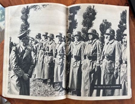 Offered here is an extremely hard to find original SS publication, published in 1942 by order of the Reichsführer-SS Heinrich Himmler / SS-Hauptamt in Berlin, printed by Verlag Hillger in Berlin. The 6 x 8 inch soft cover book has 92 extremely interesting pages and great SS photos. Its intention was to get more volunteers to sign up and become a member of Himmlers “Black Order”! The book is divided into two main chapters. The first chapter is on the structure, career opportunities, etc.:
