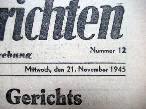 LOT OF THE FIRST 22 POSTWAR 1945 ISSUES NUREMBERG TRIAL GERMAN NEWSPAPERS