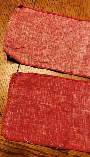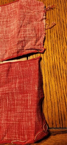 Both were just purchased from the family of a GI who brought them back in 1945. Both are late war printed examples, and both were removed from coat or tunic. The threads are still present on both. Top one is 16 1/2 inches length and bottom one 15 inches. Both are in identical condition, and construction with no problems with slight wear. Two nice honest bands that haven’t been in a collector’s hands before. $130.00 each.