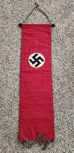 UNIQUE ORIGINAL DOUBLE-SIDED 26 x 6 INCH THIRD REICH HANGING FLAG
