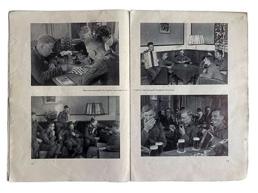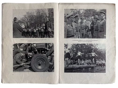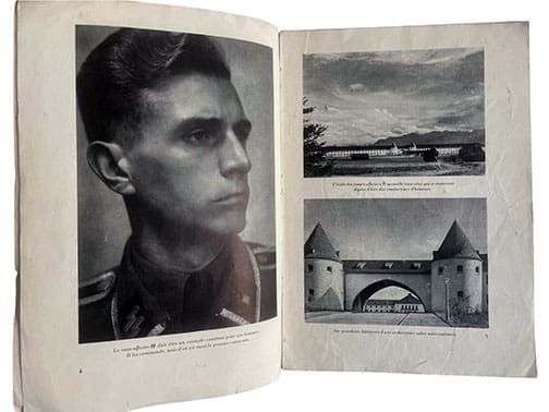 The 32-page, large format 210 x 310 mm or 8-1/4 x 12-1/4 inch photo brochure was published in 1943 or 1944 by the SS-Hauptamt in Berlin. It was published to attract French volunteers for the service in the Waffen-SS. Therefore, it is printed in French. This definitely is one of the rarest SS publications and we don’t know of another copy currently offered online anywhere else. This is an original, not a reprint!